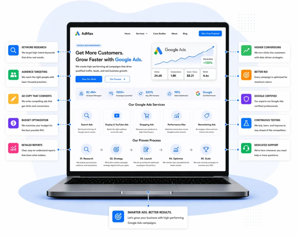 Google Ads management services by EcomBizGrow – precision targeting, high-performing PPC campaigns, and ROI optimization strategies that boost conversions by +72% and reduce cost per conversion by -35%
